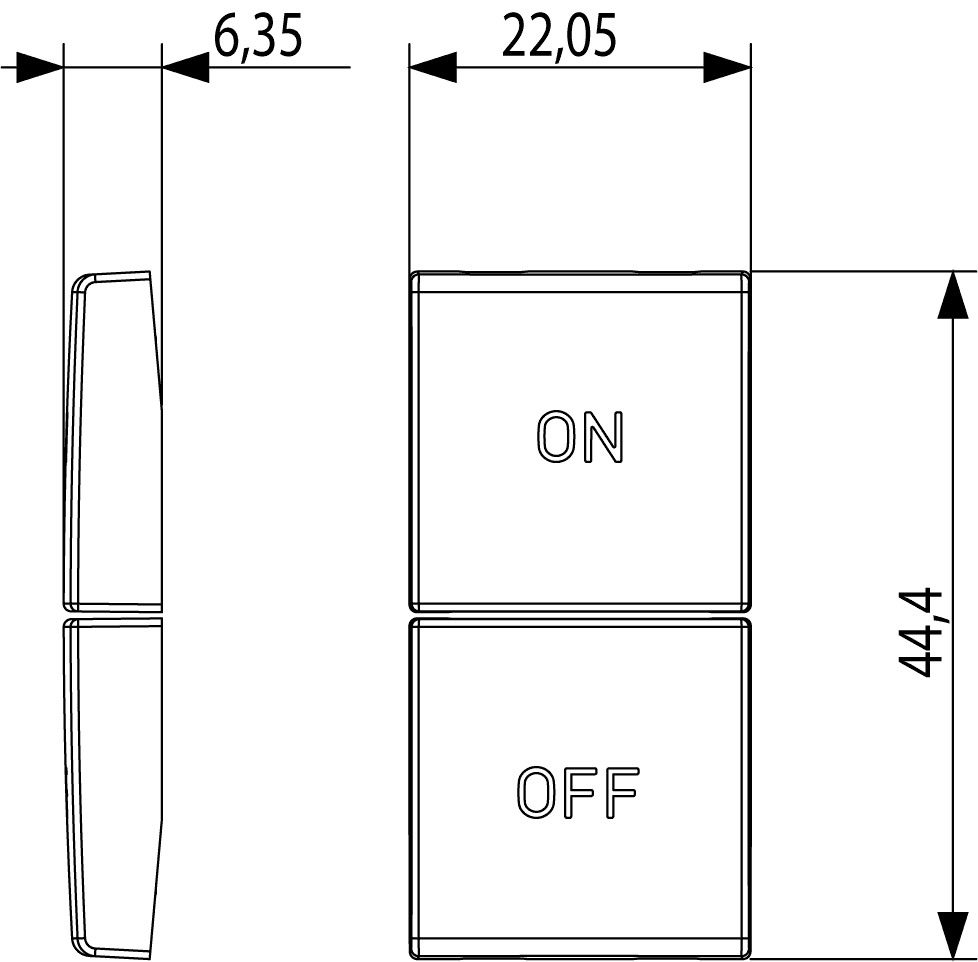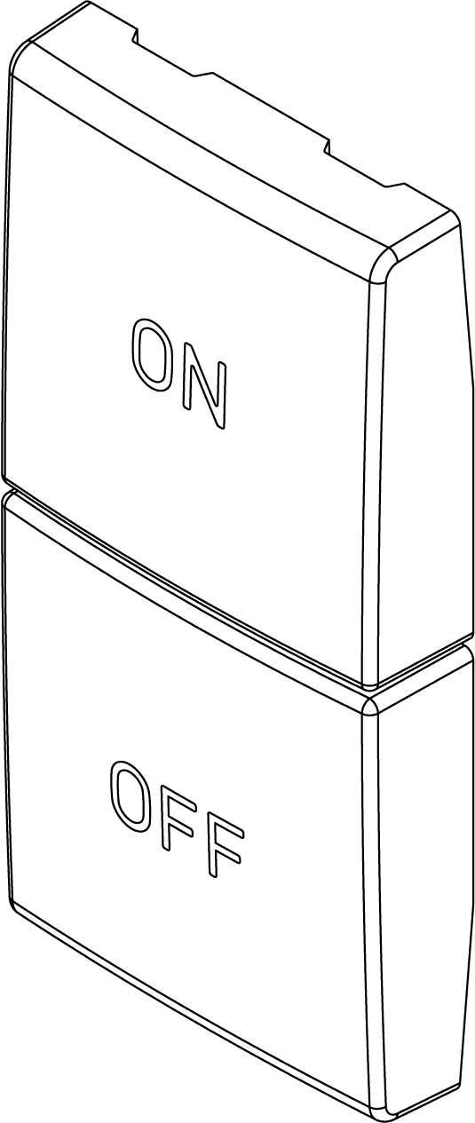 Две взаимозаменяемых половинных кнопки, символы «ON»/«OFF» 1 и 2 модуля, Vimar Arke 19751.1.B