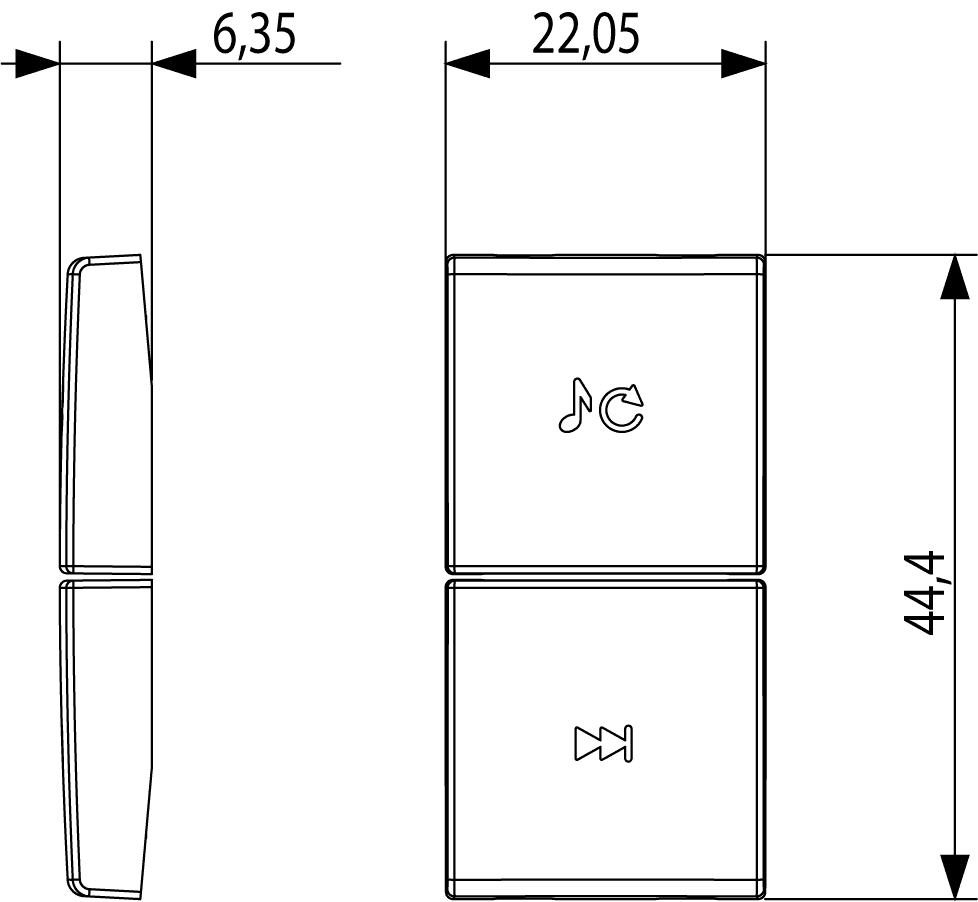 19751.5 Две взаимозаменяемых половинных кнопки Vimar Arke Серые Символы смены функции и трека
