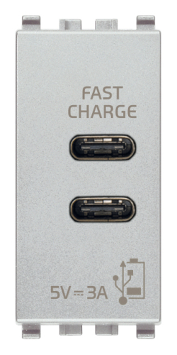 Зарядка USB type-C + C, 3А с быстрой зарядкой Eikon EVO, Eikon EXE, USB type-C 5V, двойная Next, серебро Vimar 20292.CC.N