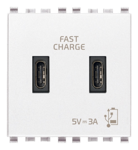 20295.CC.B Зарядка USB type-C+C, 3А с быстрой зарядкой Eikon EVO, Eikon EXE, USB type-C 5V, двойная белый Vimar