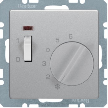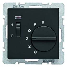 20306082 Регулятор температуры помещения с размыкающим контактом, центральной панелью, одноклавишным выключателем и светодиодом, Q.х, цвет: белый, с эффектом бархата Berker