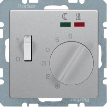 20346089 Регулятор температуры помещения пола с замыкающим контактом, с центральной панелью и светодиодом 2 светодиода и датчик температуры пола цвет: полярная белизна, с эффектом бархата, Q.1 Berker