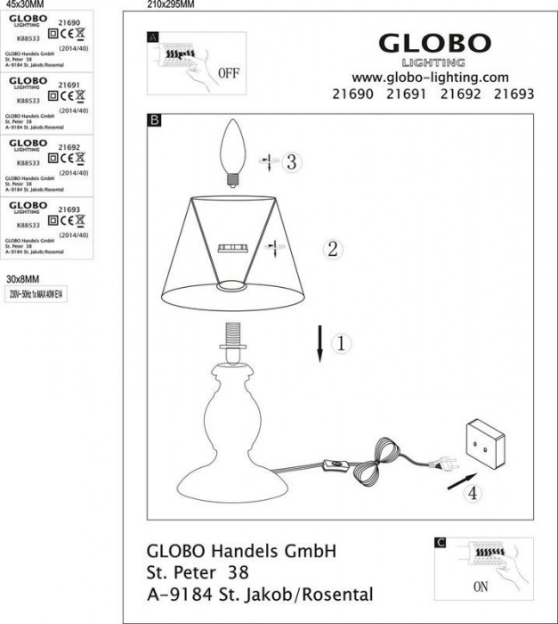 Настольная лампа 21691 – это продукция бренда Globo из коллекции Metalic. Габаритные размеры: высота 280 мм, диаметр 170 мм.