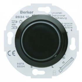 283411 Универсальный поворотный диммер с "Soft"-регулировкой, центральной панелью цвет: черный, с блеском серия 1930, Glasserie, Palazzo Berker