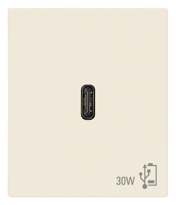 Зарядка USB type-C, 3А, 30 Вт с быстрой зарядкой , USB type-C 5V, одинарная, бежевый матовый Canvas ar Vimar Linea 30298.C
