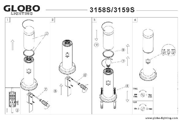 Уличный столб 3158S изготавливается брендом Globo, относящаяся к коллекции Boston. Габаритные размеры: высота 450 мм, диаметр 127 мм.
