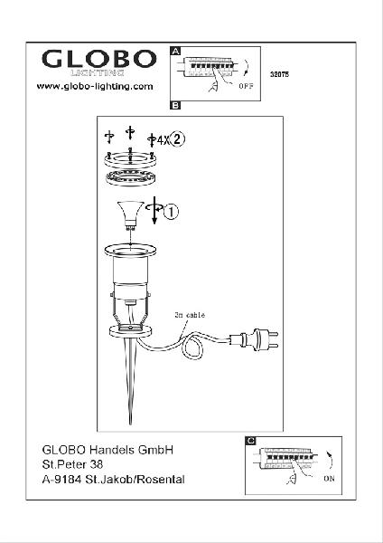 Грунтовый светильник 32075 – это продукция бренда Globo из коллекции Style. Габаритные размеры: высота 305 мм, диаметр 98 мм.