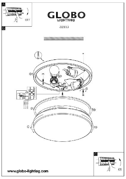 Уличный потолочный светильник 32113 изготавливается брендом Globo, которая относится к коллекции Vranos. Размеры: высота 70 мм, диаметр 300 мм.