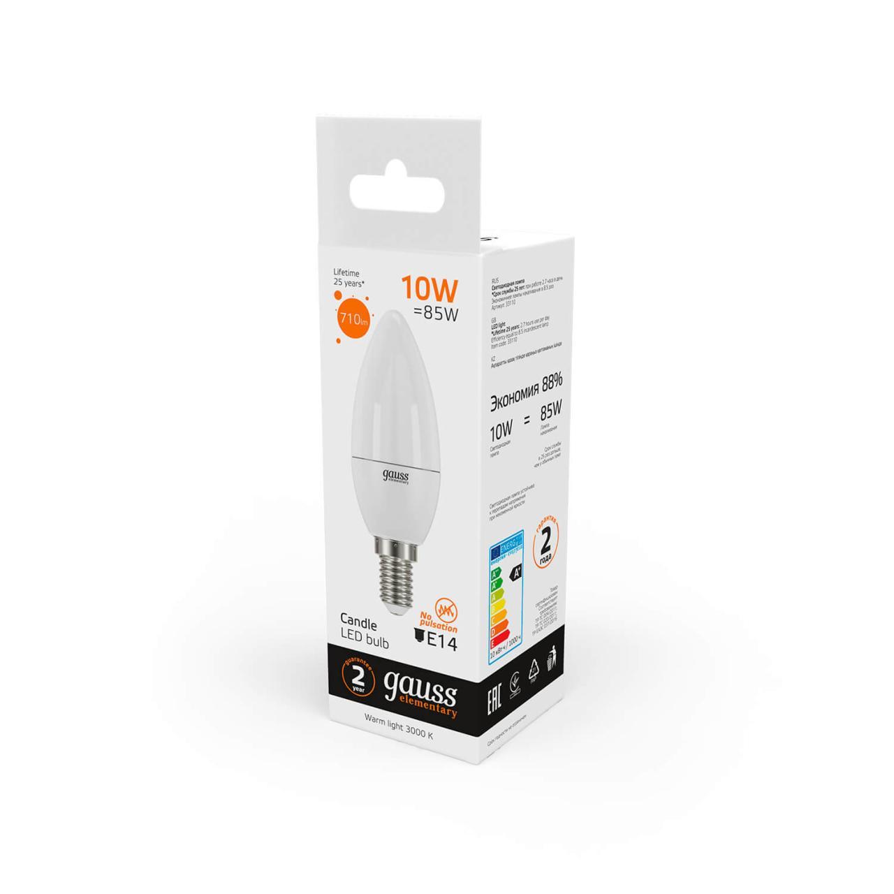 Светодиодная лампа Gauss Elementary Candle 10W E14 2700K 33110