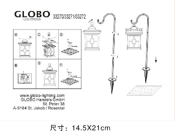 Грунтовый светильник 33270 изготавливается брендом Globo из коллекции Solar. Размеры: длина 680 мм, высота 210 мм, ширина 143 мм.