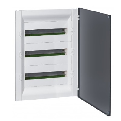 401708 Распределительный щиток Practibox³ скрытого монтажа - IP 40 - IK 07 - 3 рейки - 54 модуля - с клеммиком заземления - прозрачная дверь Nedbox Legrand