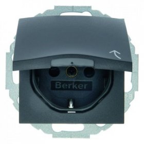 47441606 Штепсельная розетка SCHUKO с откидной крышкой цвет: антрацит, матовый B.1/B.3/B.7 Glas Berker