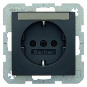 47501606 Штепсельная розетка SCHUKO с полем для надписей цвет: антрацит, матовый B.1/B.3/B.7 Glas Berker