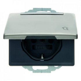 47580001 Штепсельная розетка SCHUKO с откидной крышкой и полем для надписи цвет: светло-бронзовый, металл Arsys Berker