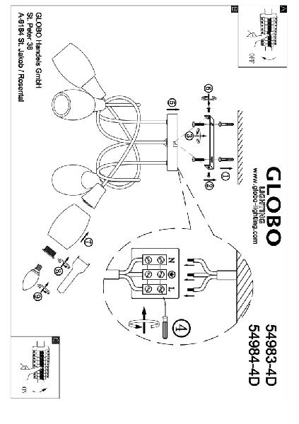Люстра потолочная 54983-4D изготавливается брендом Globo, относящаяся к коллекции Gillian. Габаритные параметры: высота 310 мм, диаметр 495 мм.