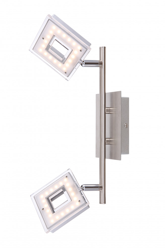 Осветительный прибор разработан в стиле Хай-тек. Подходят лампочки с цоколем LED мощностью 2x4,2W Вт, в количестве 2 шт. Основной цвет модели 56138-2: Никель.