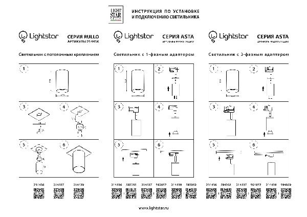 Трековое крепление с 1-фазным адаптером к 21443х/21448x Lightstar Asta 592057