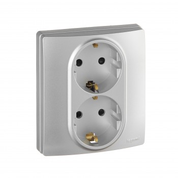 672433 Розетка двойная 2 x 2К+З со шторками - немецкий стандарт - автоматические зажимы - 16 А - 250 В~ - Etika - алюминий Legrand