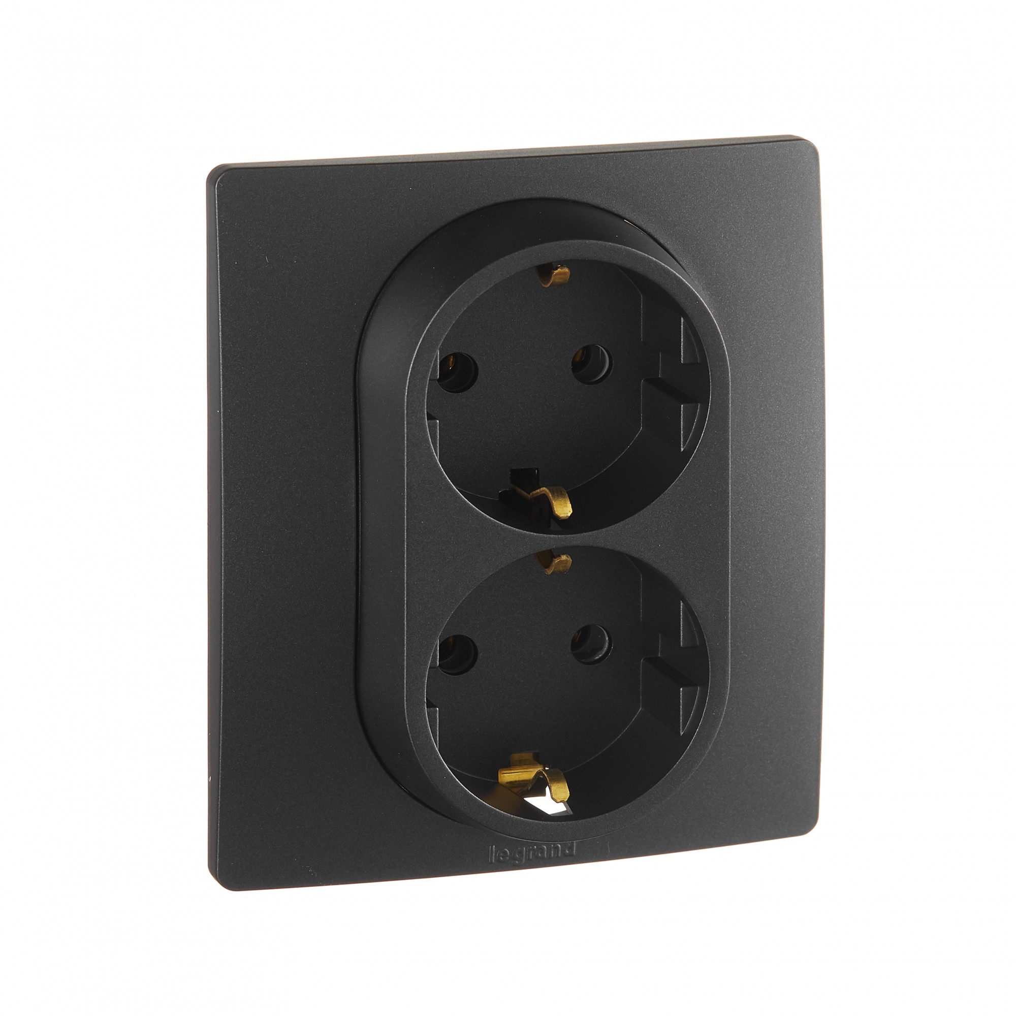 672623 Розетка 2 x 2К+З - немецкий стандарт - винтовые зажимы - 16 А - 250 В~ - Etika - антрацит Legrand