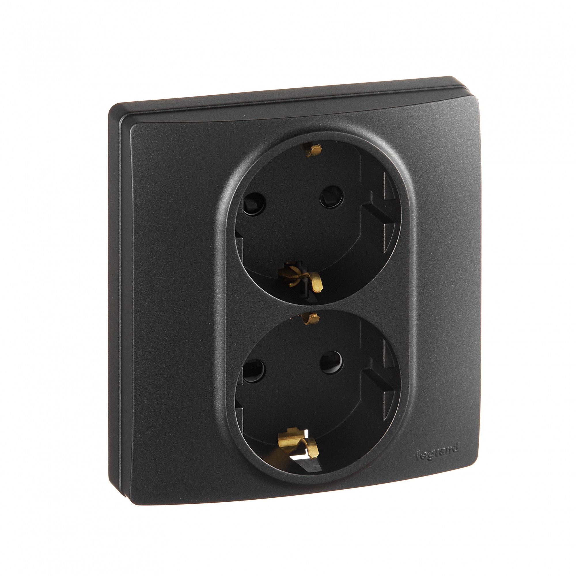 672633 Розетка 2 x 2К+З со шторками - немецкий стандарт - автоматические зажимы - 16 А - 250 В~ - Etika - антрацит Legrand