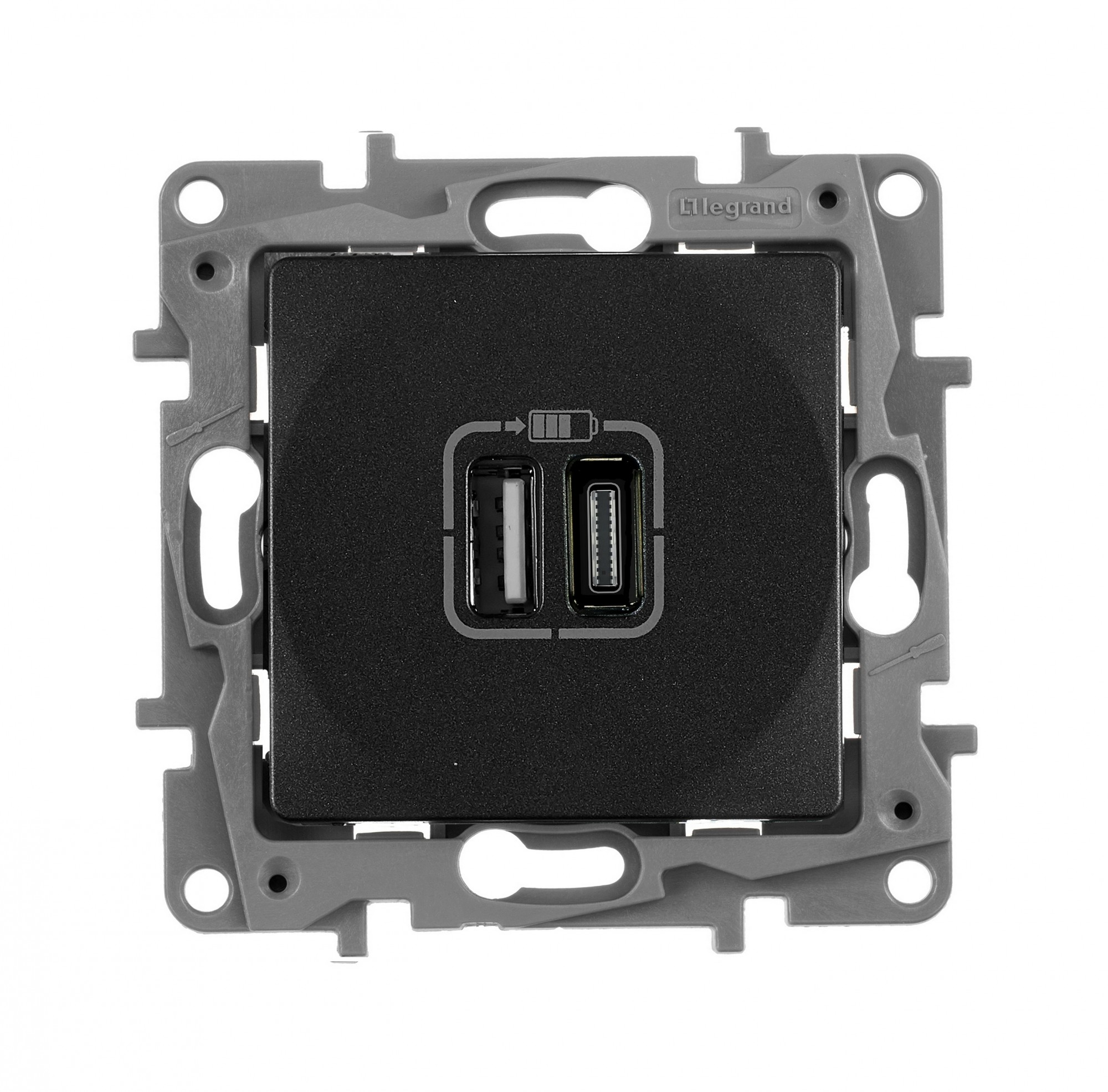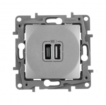 672636 Зарядное устройство с двумя USB-разьемами тип A-тип С 240В/5В 3000мА - Etika - Цвет Антрацит Legrand