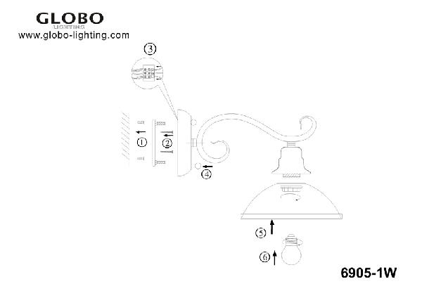 Бра 6905-1W – это продукция бренда Globo, относящаяся к коллекции Sassari. Габаритные параметры: высота 215 мм.