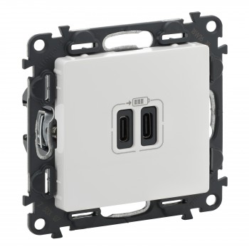 753207 Valena LIFE. Зарядное устройство с двумя USB-разъёмами тип С-тип С 240В/5В 3000мА.С лицевой панелью. Цвет Слоновая кость. Legrand