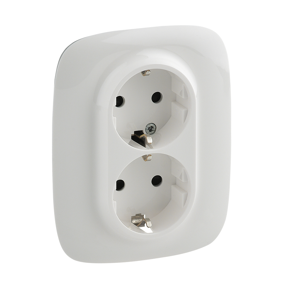 753726 Valena ALLURE. Силовая розетка двойная 2х2К+З 16А 250В с лицевой панелью. С защитными шторками. Безвинтовые зажимы. Белая Legrand