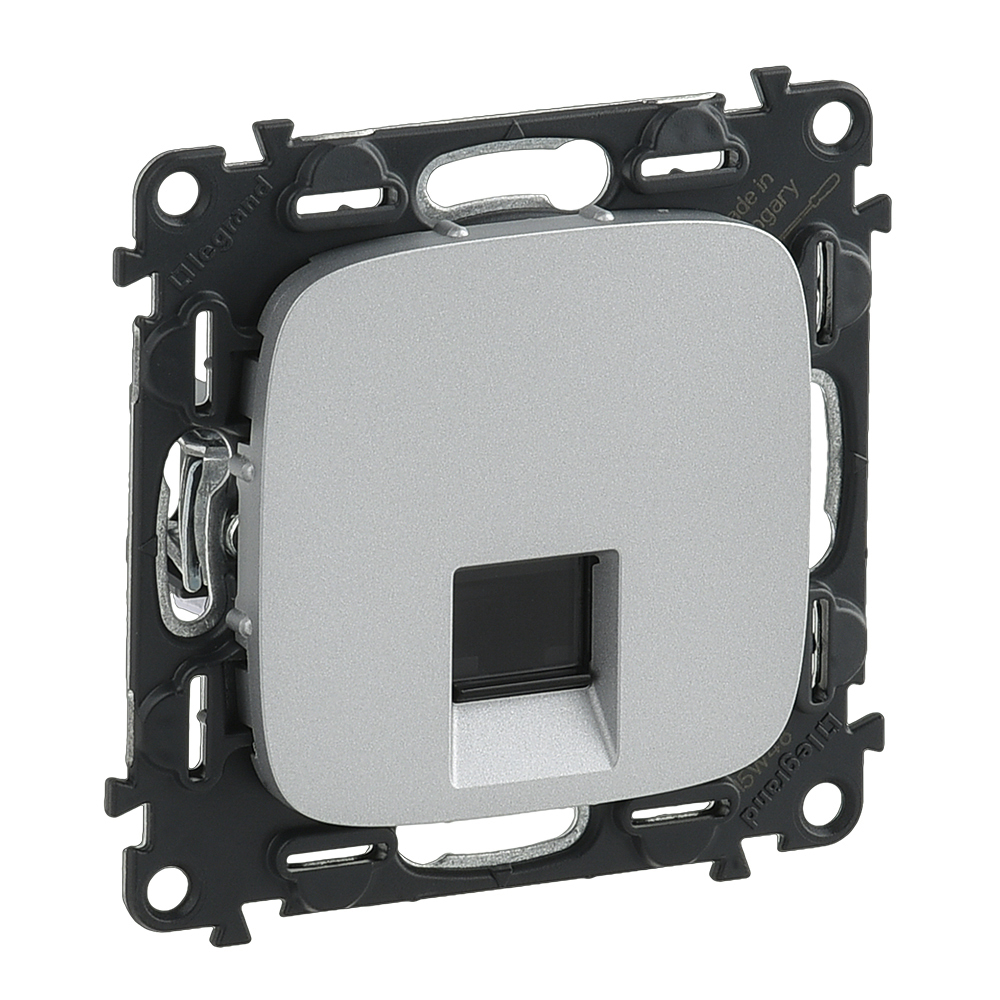 753940 Valena ALLURE. Информационная розетка одиночная RJ45 Кат. 5е UTP. С лицевой панелью. Алюминий Legrand