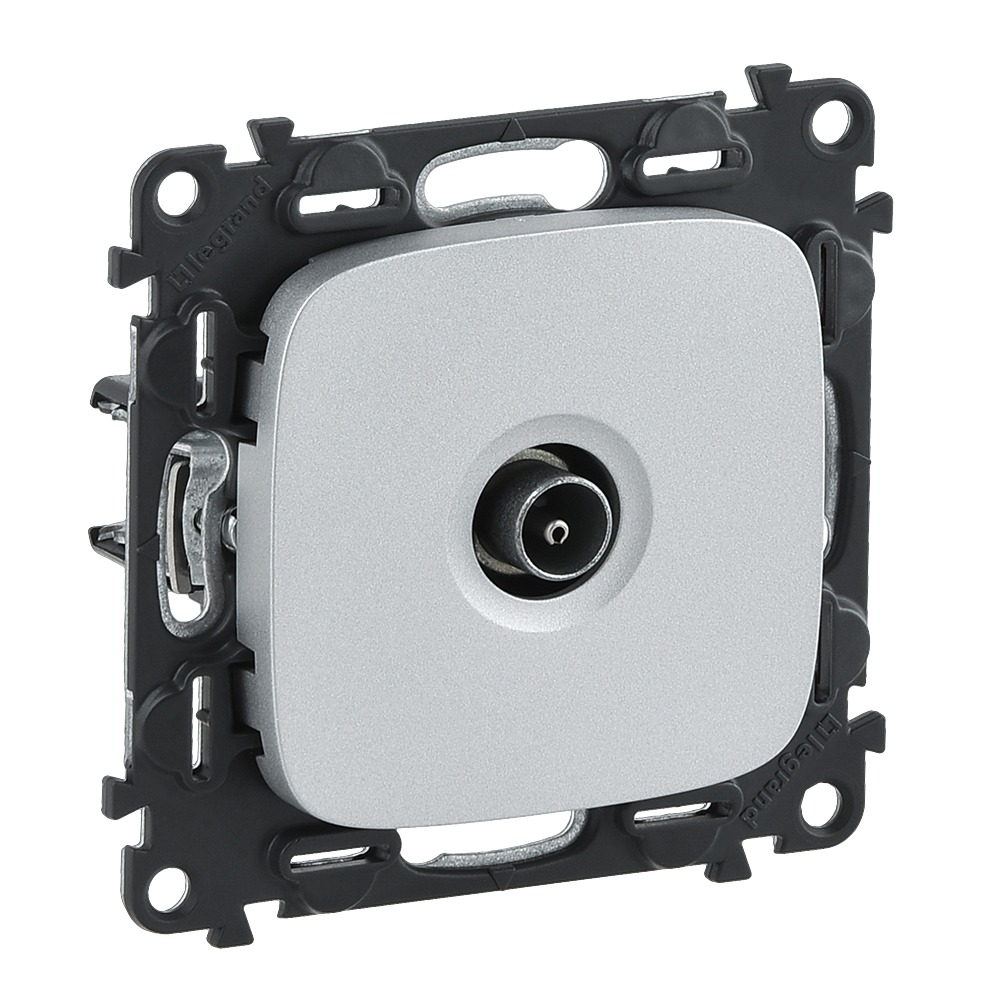 753951 Valena ALLURE. Розетка ТВ c топологией "звезда" 0-2400 МГц. С лицевой панелью. Алюминий Legrand