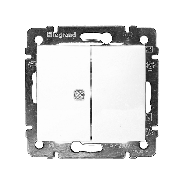 774445 Valena Выключатель 2-х клавишный с индикац на 1-й клавише с нейтралью Legrand