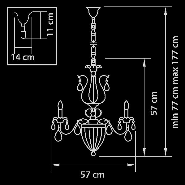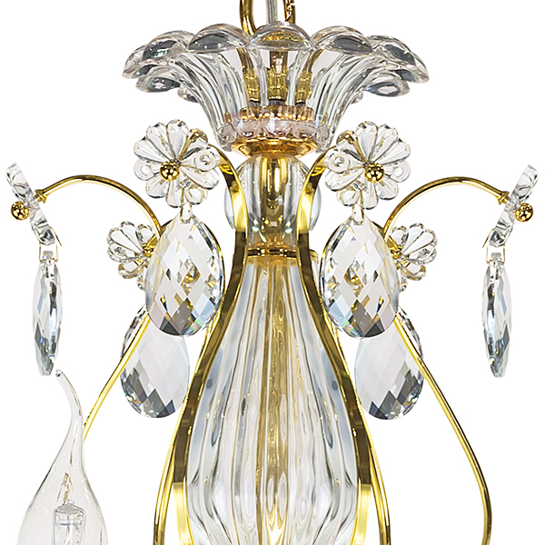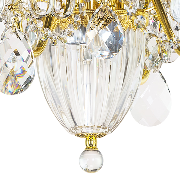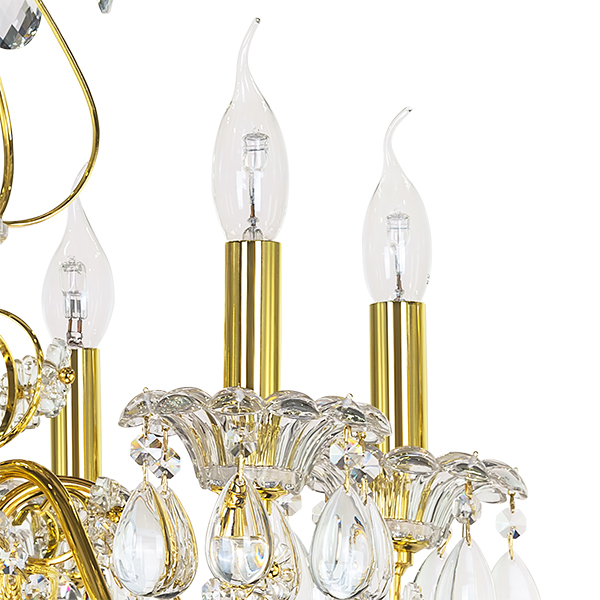 Осветительный прибор создан в стиле Барокко. Применяются лампочки с цоколем E14 мощностью 540 Вт, количеством 6 ед. Основной цвет модели 790062: Золотой.