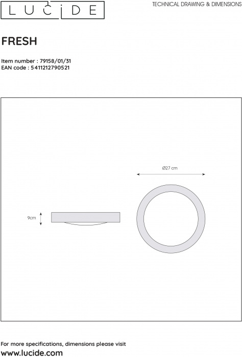 Накладной светильник 79158/01/31 производится брендом Lucide и принадлежит коллекции Fresh. Размеры: высота 80 мм, ширина 270 мм, диаметр 270 мм. Светильники Lucide 79158/01/31 созданы с применением высококачественных и прочных материалов, таких как: Алюминий, плафон - Акрил.