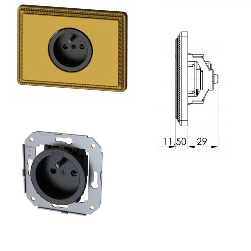 79C34P Fontini 1950 двойная французская двухполюсная розетка с заземлением 16A - 250VAC со шторками BLACK , ант.бронза