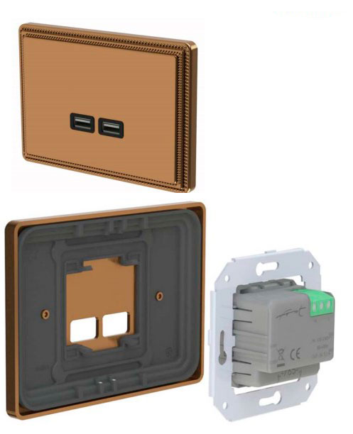 Розетка 1950 Socket + USB, античная бронза Fontini 79CF5P