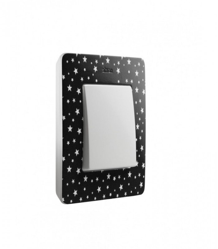 8200610-222 Рамка декоративная, 1 пост, Simon 82 Detail Original, чёрный в белые звёзды-белый
