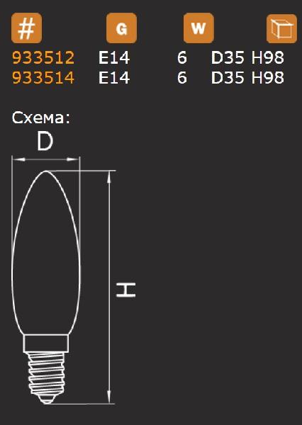 Светодиодная лампа Lightstar E14 6W 2800-3000K 933502 соответствует параметрам: цоколь E14, мощность 6 Вт, цветовая температура 2800-3000.