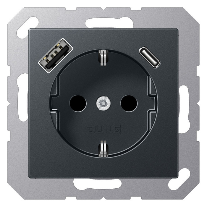 A1520-15CAANM Розетка Jung AS 500 SCHUKO® с USB-зарядным устройством, тип A + тип С. термопласт. матовый антрацит