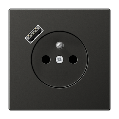 AL1520F-18AAN-L Dark Розетка франко-бельгийской системы c USB зарядным устройством 2-пол. и заземление (штырь) с 1 USB-портом типа A LS серия
