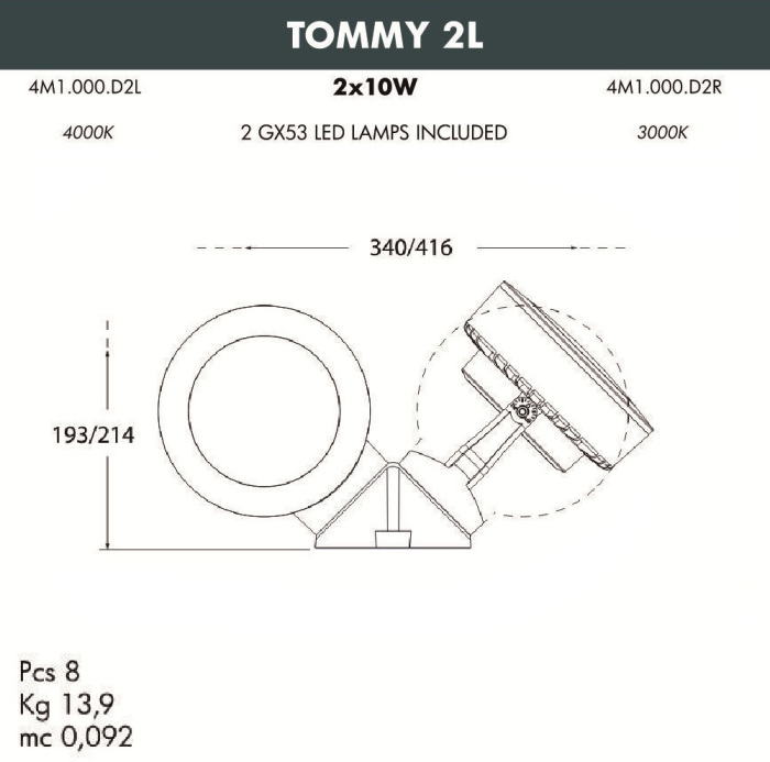 Осветительный прибор сделан в стиле Современный. Применяются лампы с цоколем GX53 мощностью 20 Вт, в количестве 2 ед. Цвет модели 4M1.000.000.LXD2L: Серый.