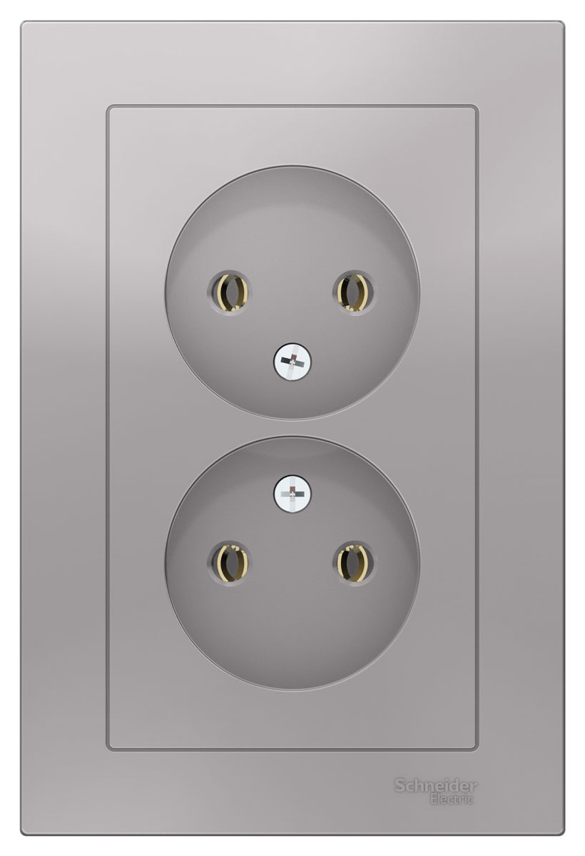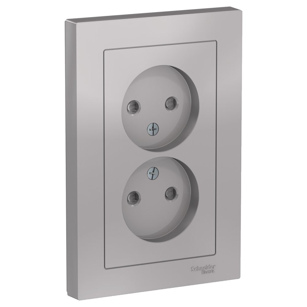 Розетка двойная без заземления со шторками,16А, в сборе, Алюминий Systeme Electric (Schneider Electric) AtlasDesign ATN000322