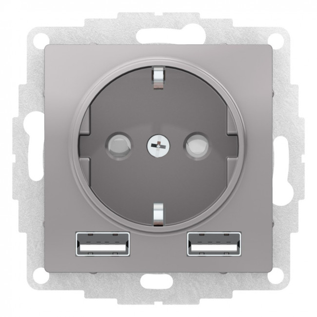 SO + USB розетка A+A, 5В/2,4А, 2х5В/1,2А, алюминий Systeme Electric (Schneider Electric) AtlasDesign ATN000330