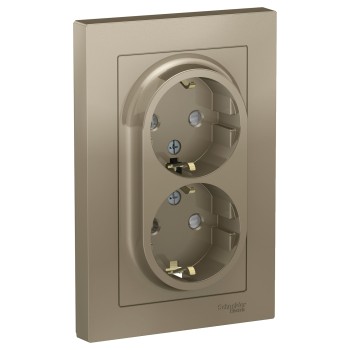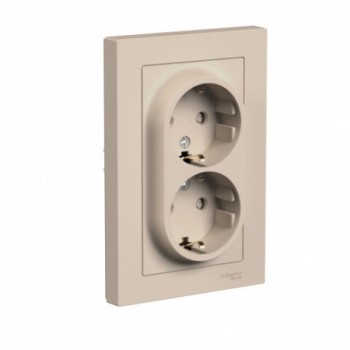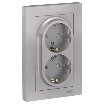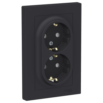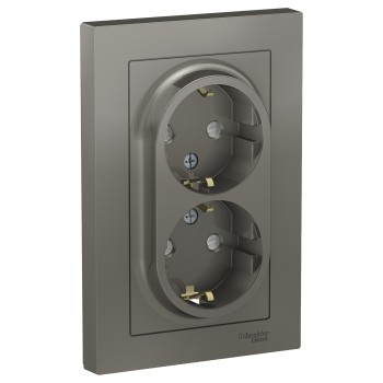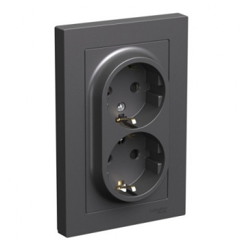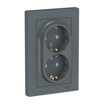 Розетка двойная с заземлением со шторками, 16А, в сборе, Грифель Systeme Electric (Schneider Electric) AtlasDesign ATN000726