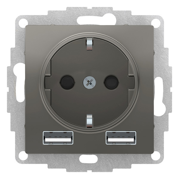 SO + USB розетка A+A, 5В/2,4 А, 2х5В/1,2 А, сталь Systeme Electric (Schneider Electric) AtlasDesign ATN000930