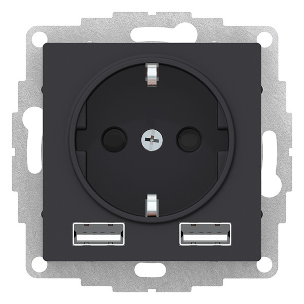 - SO + USB розетка A+A, 5В/2,4А, 2х5В/1,2 А, карбон Systeme Electric (Schneider Electric) AtlasDesign ATN001030