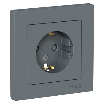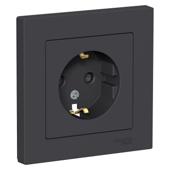 Розетка с заземлением со шторками, 16А, в сборе, Карбон Systeme Electric (Schneider Electric) AtlasDesign ATN001044