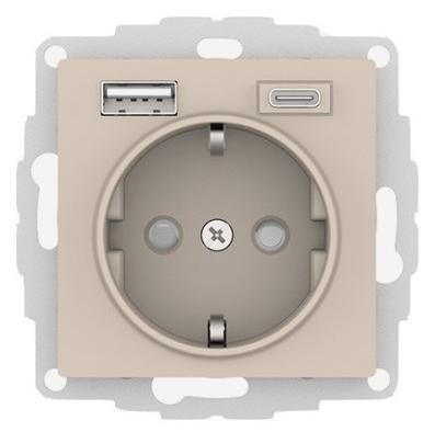 Розетка 16А c 2 USB A+C, 5В/2,4А/3,0А, 2х5В/1,5А, механизм, Песочный Systeme Electric (Schneider Electric) AtlasDesign ATN001232
