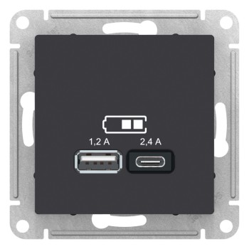 USB розетка А+С, 5В/2,4 А, 2х5В/1,2 А, механизм, лотос Systeme Electric (Schneider Electric) AtlasDesign ATN001339
