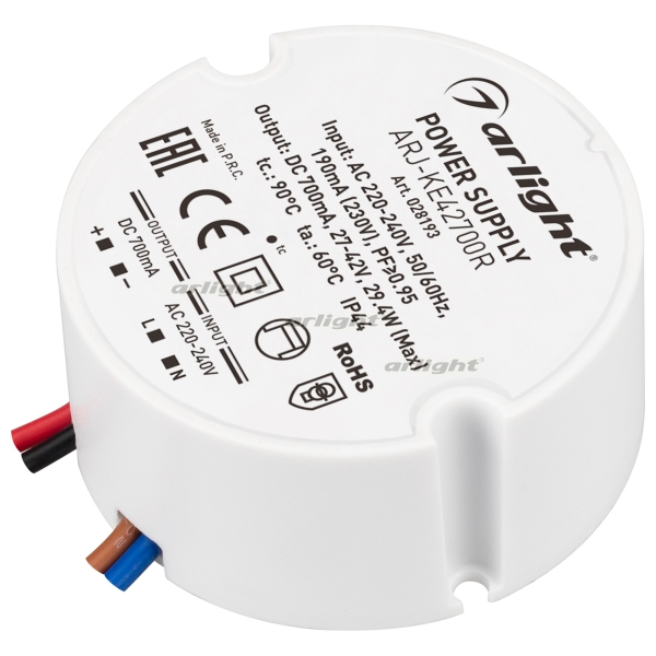 Блок питания ARJ-KE42700R (29W, 700mA, PFC) (Arlight, IP44 Пластик, 5 лет) 028193