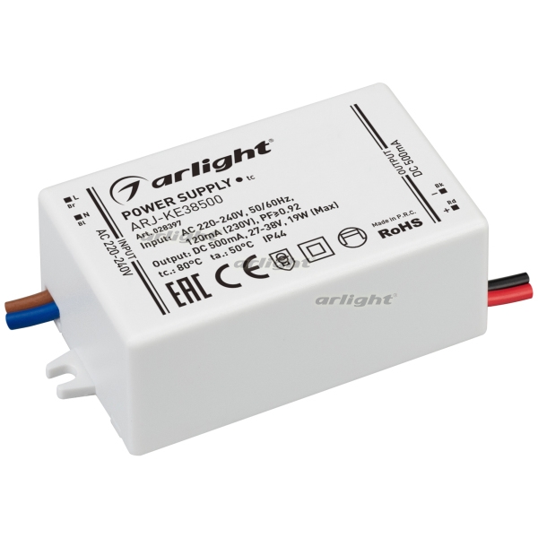Блок питания ARJ-KE38500 (19W, 500mA, PFC) (Arlight, IP44 Пластик, 5 лет) 028397